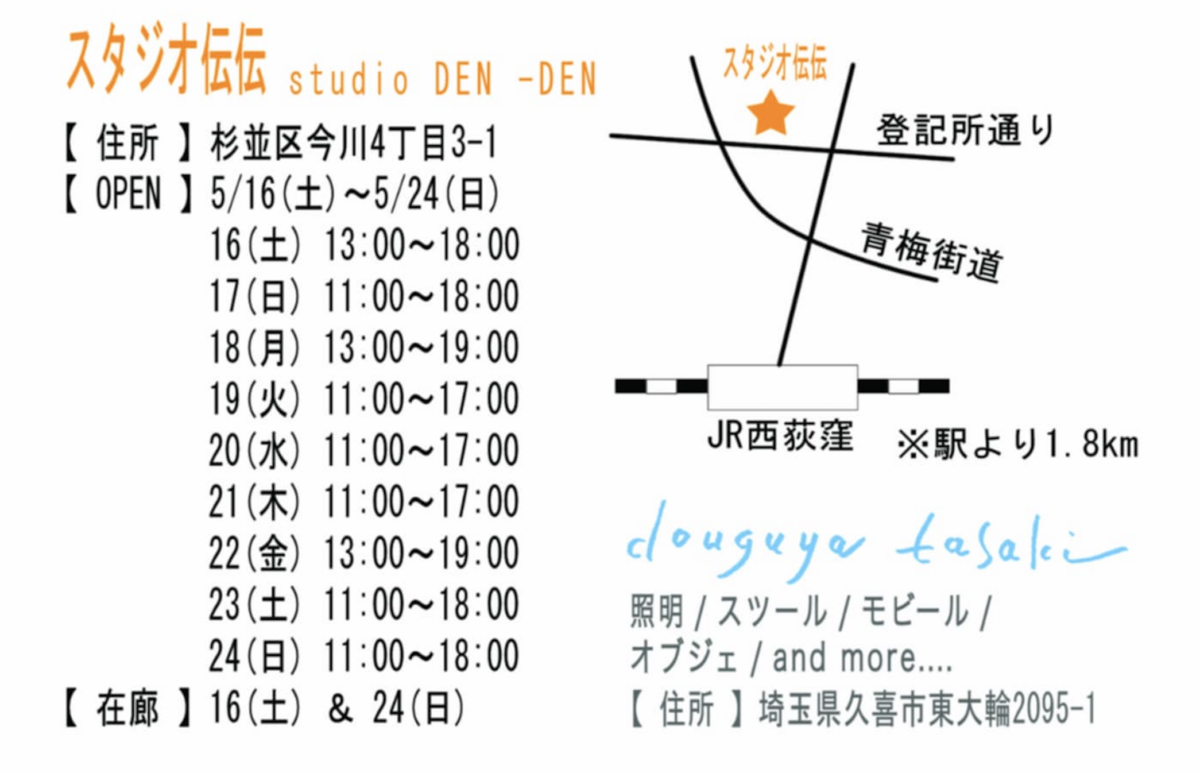 5月16日から、スタジオ伝伝 東京事務所にて、